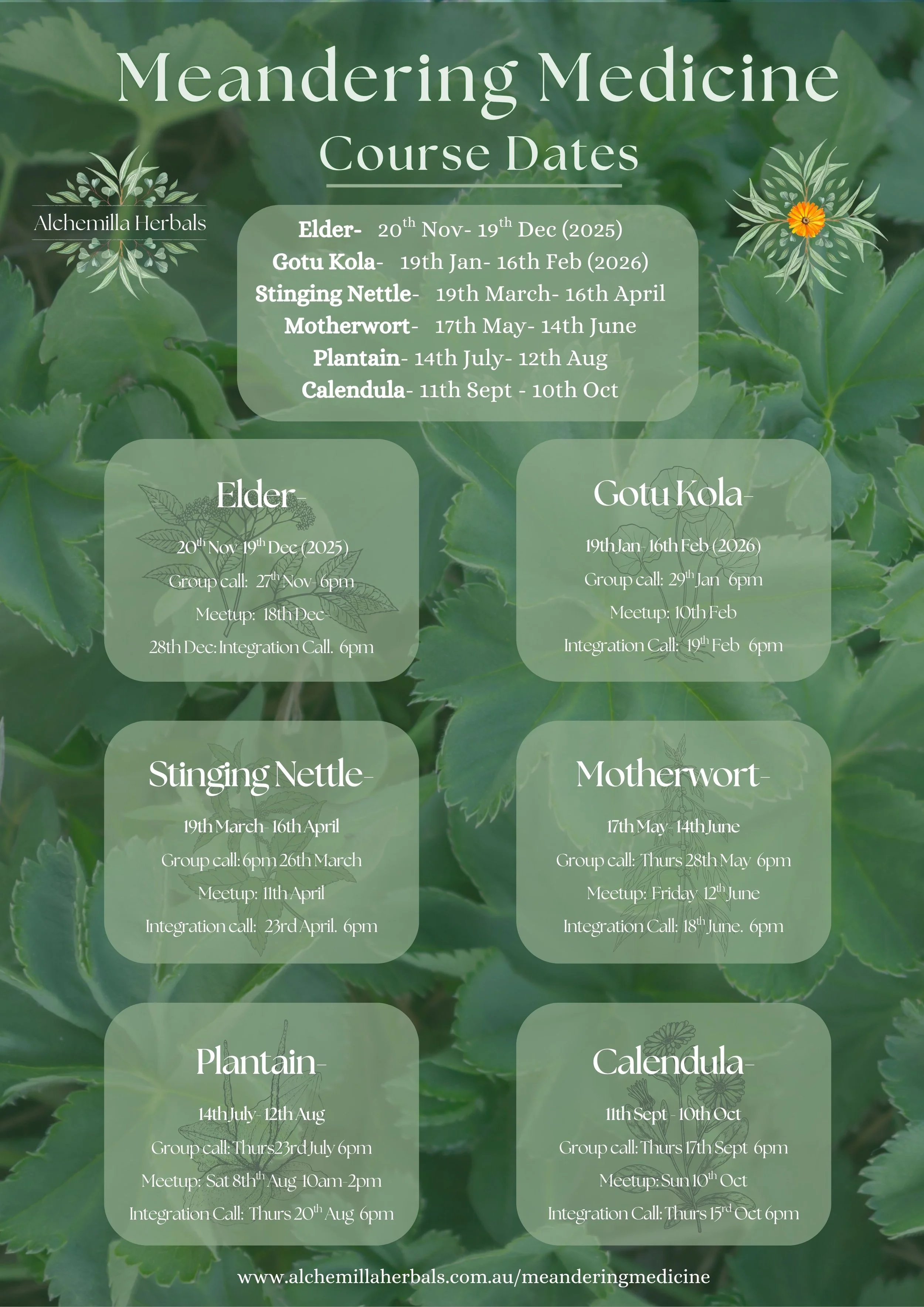 Gotu Kola Moon begins 19th Jan, or you can purchase course materials for $160 to do at your own pace.