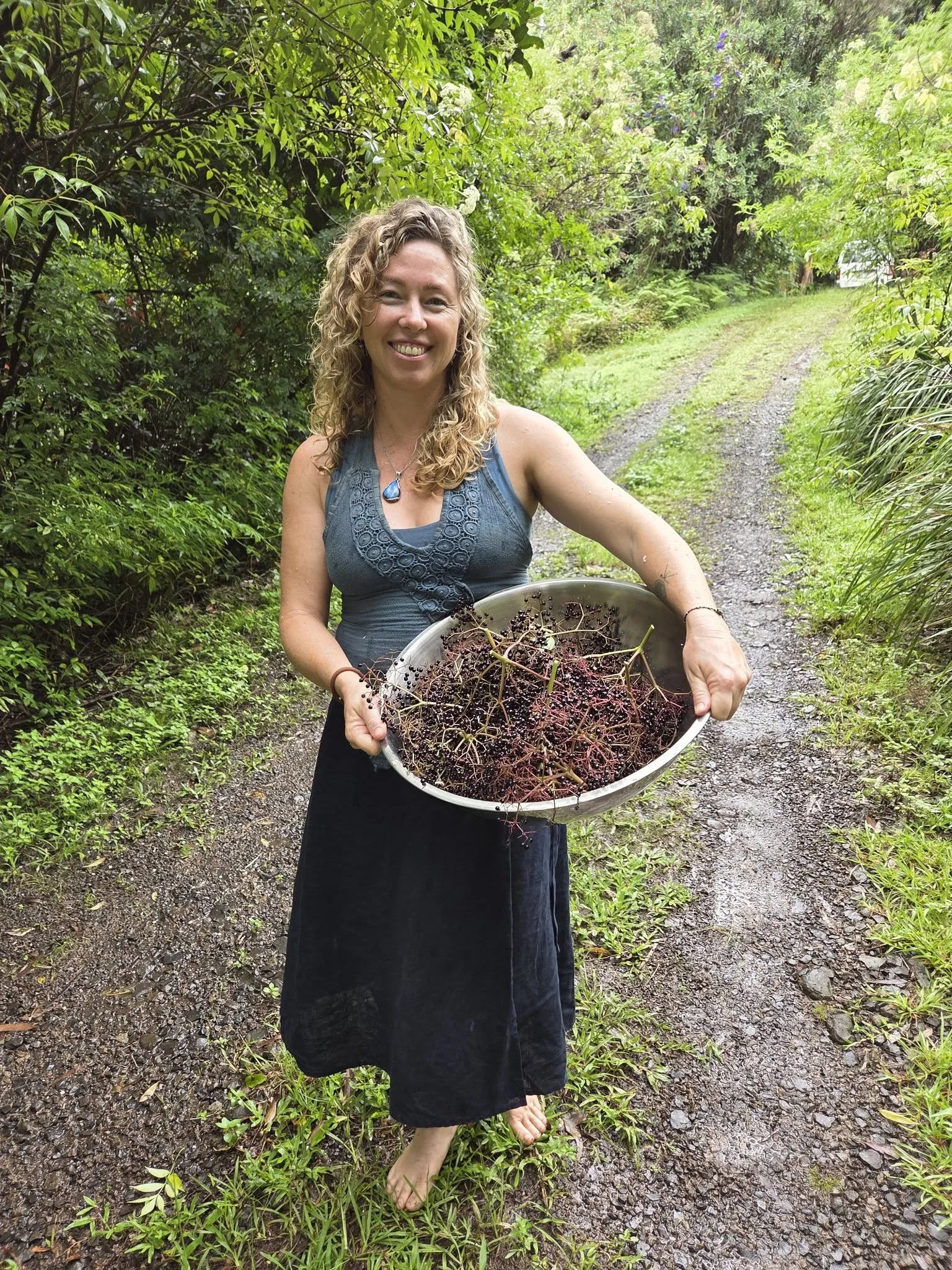 Me gathering Elderberries at Flourish Sanctuary.