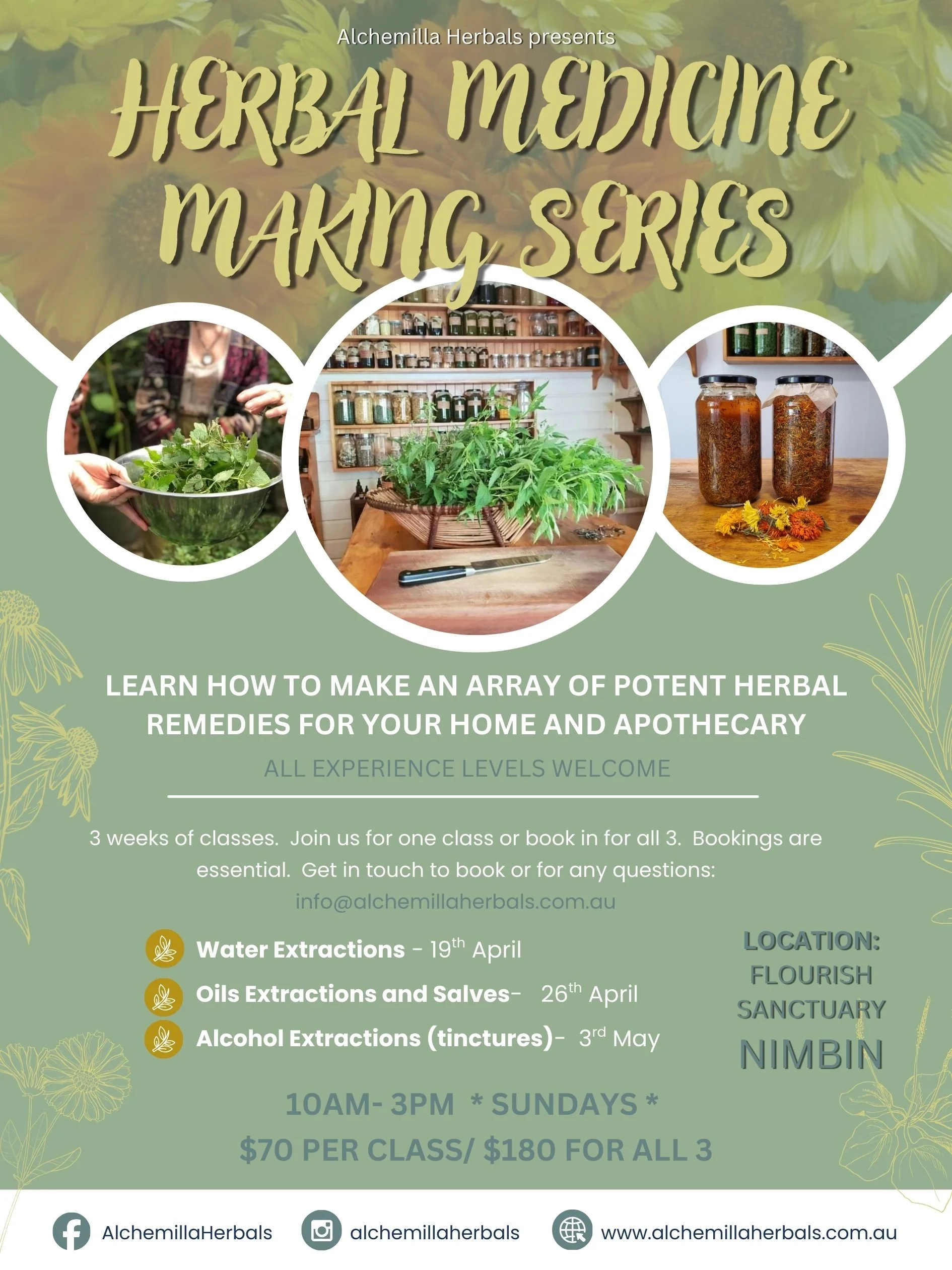 Book in for one workshop, or all three. They are run on 3 consecutive Sundays, from 10am-3pm at Flourish Sanctuary, Nimbin.